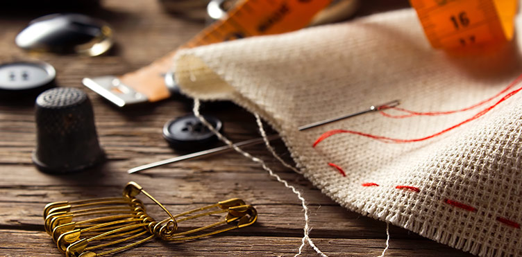 - متر پارچه، قیچی پارچهای تیز، گونیا